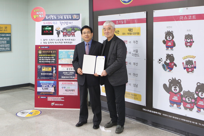 공사 김민기 사장은 “이번 협약으로 시민구단인 대전시티즌이 시민에게 사랑받고 홈경기가 더 흥행할 수 있을 것”이라며“지역 제휴업체의 협약을 더욱 확대해 시민에게 많은 서비스를 제공해 나가겠다”고 말했다.
