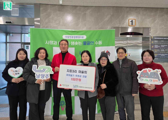 이진춘 수동면장은 “마을 주민들이 한마음으로 마련한 소중한 후원에 깊이 감사드린다”며 “전달된 후원금은 꼭 필요한 이웃에게 정성껏 전달해 주민 중심의 복지 행정을 이어가겠다”고 말했다.