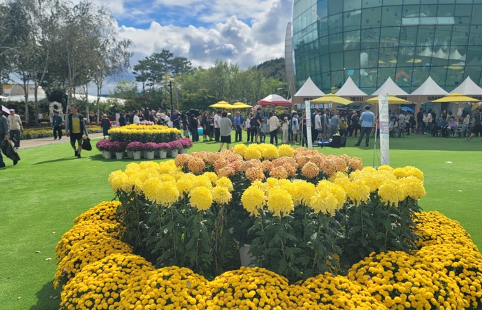 세계로컬타임즈 - 제천엑스포 광장, 가을비 뒤 만개한 꽃 물결