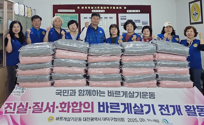 최충규 대덕구청장은 “어려운 이웃들께 따뜻한 온기를 전해 주신 바르게살기운동 대전대덕구협의회에 깊이 감사드린다”며 “구민 누구도 돌봄에서 소외되지 않도록 복지 안전망 더 촘촘히 만들겠다”고 전했다.