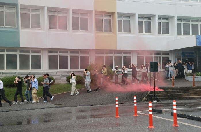 현장에서는 군청사 내 테러와 화재 발생 상황을 가정해 테러 진압과 인질 구출, 화재 진압, 인명 구조, 응급 복구 등의 절차가 진행됐으며, 소방차, 구급차, 시설 복구 차량 등의 장비가 투입돼 실전과 같은 긴박한 현장감을 연출했다.