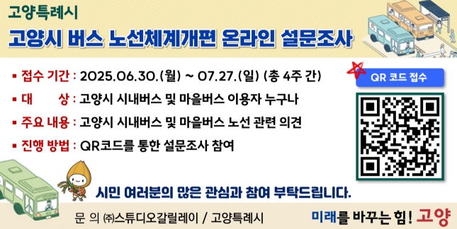 온라인 설문은 고양시청과 3개 구청 누리집 내 배너의 설문조사 URL 또는 큐알(QR)코드를 통해 누구나 참여할 수 있다.