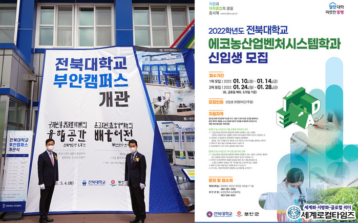 부안군에 따르면 에코농산업벤처시스템학과는 부안 농산업 맞춤형 지역 인재양성을 위해 전북도 내 농수산업·식품 산업체 종사자 및 농수산업 1차 산업 종사자를 대상으로 신입생을 모집하며 졸업 시 전북대학교 농학사 학위가 수여된다.