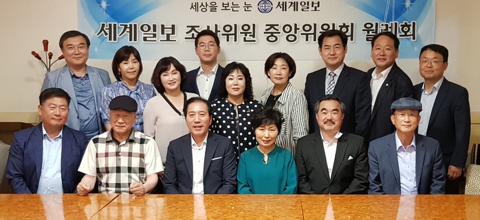 [세계로컬신문 이호 조사위원] 지난 2일 서울 서초구의 한 음식점에서 열린 세계일보 조사위원 중앙위원회(회장 박귀종) 월례회의에서 위원들이 기념촬영을 하고 있다.