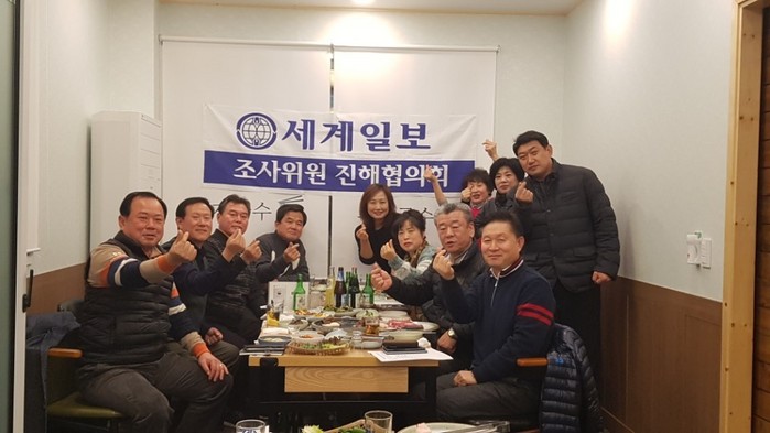 [세계로컬신문 김세완 조사위원] 지난달 30일 경남 진해 한 식당에서 개최된 세계일보 조사위원 진해협의회 송년회를 갖고 기념사진 촬영을 하고 있다.