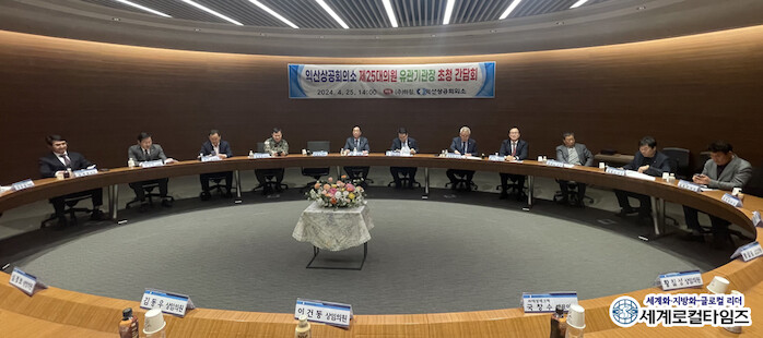 [세계로컬타임즈 조주연 기자] 전북 익산상공회의소가 25일 오후 익산시 망성면에 위치한 (주)하림 본사에서 지역 기관단체장을 초청해 지역현안에 대한 논의와 애로사항 수렴을 위한 간담회를 가졌다.