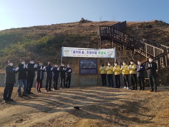 경기도와 강원도, 강원 고성군은 21일 오후 고성군 토성면 성천리 마을에서 '경기의 숲' 조성사업 준공 행사를 열었다.