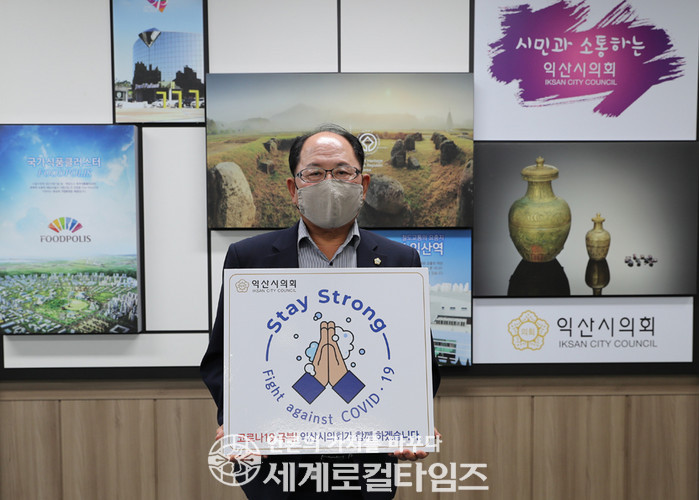 | ▲유재구 익산시의회 의장이 외교부의 코로나19 극복 캠페인에 동참해 진행하고 있다. (사진=익산시의회 제공) |