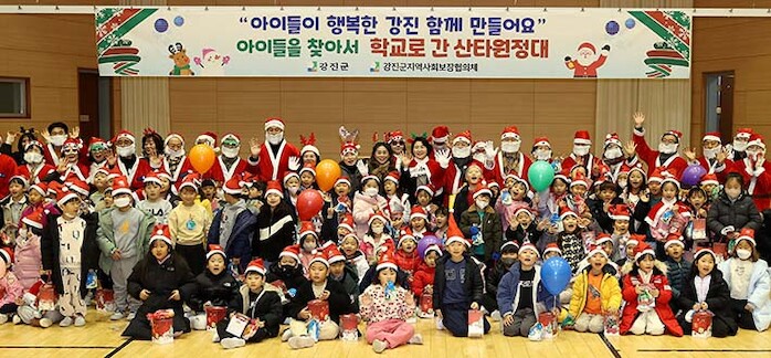강진군지역사회보장협의체는 18일 크리스마스를 앞두고 중앙초등학교에 ʽ산타 원정대’를 파견해 어린이들에게 크리스마스 이벤트로 선물과 감동을 선사했다.