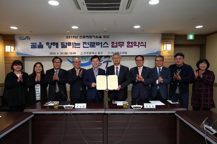 [세계로컬타임즈 장선영 기자] 인천 동구는 초·중학교 학생들의 진로교육 지원을 위해 관내 버스 운송업체인 그랜드관광과 '꿈을 향해 달리는 진로버스' 제공 교육기부 업무협약을 체결했다.