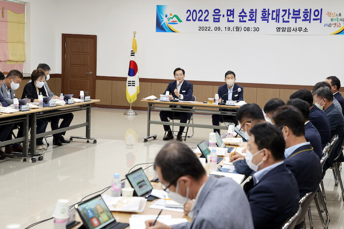 [세계로컬타임즈 강석운 기자] 영암군은 19일 영암읍사무소 2층 회의실에서 우승희 군수 주재로 실과소장 및 읍면장이 참석한 가운데 9월 중 읍면 순회 확대간부회의를 개최했다.