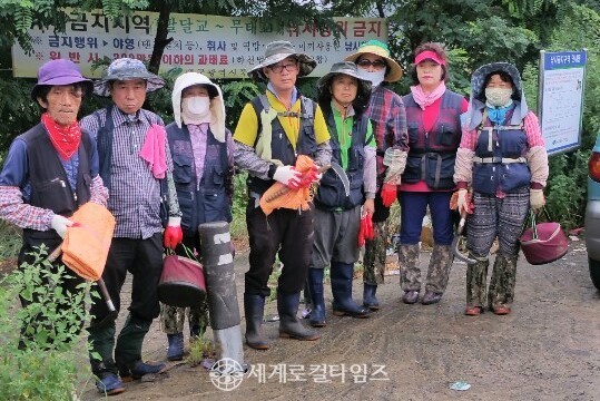 | ▲참가자들이 제거작업 후 기념촬영을 하고 있다. |