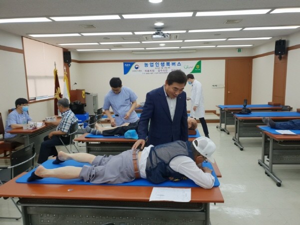 '농업인 행복버스'는 의료이용 접근성이 낮은 농업인 등 취약계층에게 의료지원과 고령 농업인에게 장수사진 촬영, 안경검안 등의 서비스를 제공하는 사업이다.