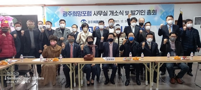 광주희망포럼은 지난 3일 오후 광주시 서구 농성동 사무실에서 공동대표와 회원 등 100여명 참석한 가운데 발기인 총회 및 출범식을 갖고 포럼 정관, 임원선출, 향후 사업 활동 등을 확정해 의결했다.