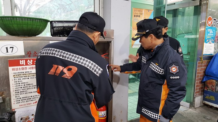 이날 중앙시장 내 소방출동로 확보 등 활동 여건과 대형화재 취약대상 소방시설, 피난·방화시설, 필로티 구조와 드라이비트로 외장 마감한 건축물 실태를 확인 점검했다.