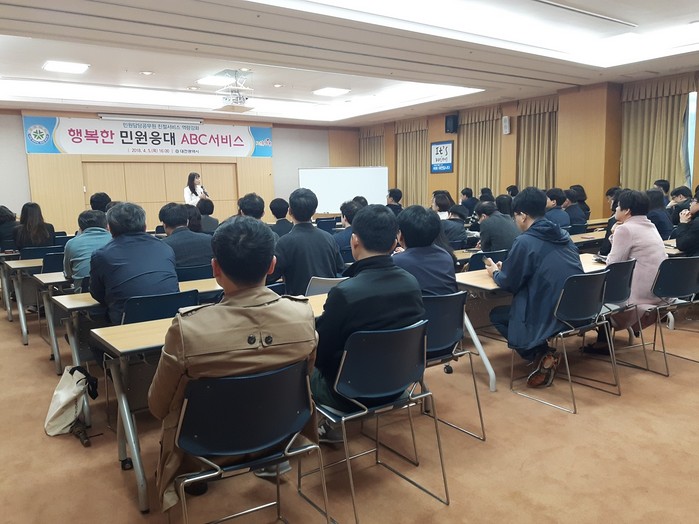 이번 교육은 시민들의 민원 체감 만족도를 높이고 습관적인 고객만족을 넘어 감동을 전하기 위한 ‘행복한 민원응대 ABC(attention behavior communication)서비스’를 주제로 진행됐다.