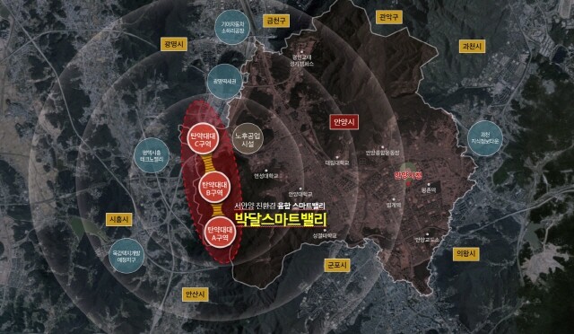 박달스마트밸리 조성사업은 안양시 만안구 박달동 일대(328만㎡) 군부대의 탄약시설을 지하화해 국방부에 기부하고, 나머지 부지를 개발용지로 확보해 도시개발사업으로 조성하는 프로젝트다.