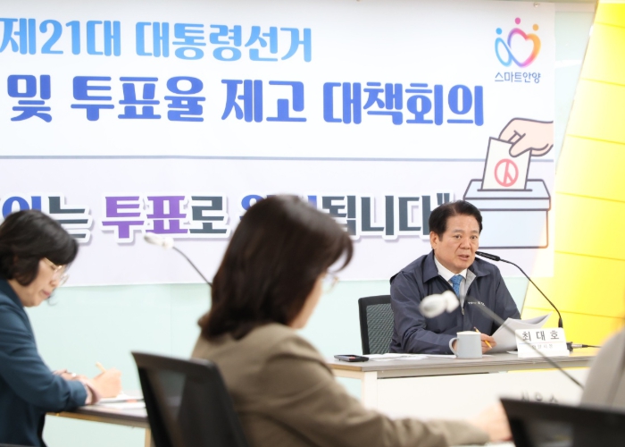 [세계로컬타임즈] 안양시가 오는 6월 3일 실시되는 제21대 대통령선거를 앞두고, 공무원의 정치적 중립을 재강조하고 시민들의 참정권 행사를 적극적으로 유도하기 위해 19일 오후 2시 시청 3층 상황실에서 ‘공명선거 및 투표율 제고를 위한 대책회의’를 열었다.
