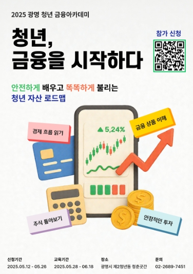 이번 교육은 광명시에 거주하거나 활동 중인 39세 이하 청년을 대상으로 하며, 건전한 투자 습관 형성과 금융 지식 습득으로 청년의 경제적 자립을 지원하는 데 목적이 있다.