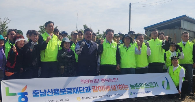 이날 일손돕기에는 충남신용보증재단 조소행 이사장을 비롯해 충남세종농협 정해웅 본부장, 삽교농협 김종래 조합장 등 관계기관 임직원 50여명이 참여하여 농번기 과수농가 사과나무 적과작업을 위해 구슬땀을 흘렸다.