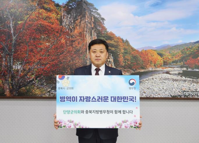 이번 캠페인은 병역이 자랑스러운 대한민국을 주제로 하는 단양군의회와 충북지방병무청이 실시하는 공동 기획 캠페인으로 인증 사진을 촬영하고 이를 언론과 미디어 등으로 홍보하고 다음 참여자를 추천하는 방식으로 진행된다.