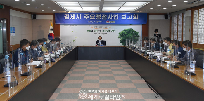 16일 김제시에 따르면 이날 박준배 김제시장은 국·소장 및 부서장이 참석한 가운데 ‘2020년 주요 쟁점사업 보고회’를 열었다.