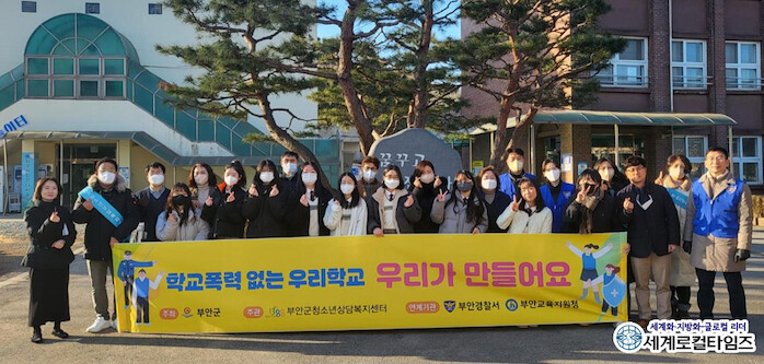 [세계로컬타임즈 조주연 기자] 전북 부안군이 2일 유관기관과 함께 ‘학교폭력 없는 우리학교 우리가 만들어요’라는 슬로건으로 신학기 학교폭력 예방 캠페인을 진행했다.