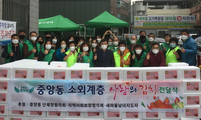 류재암 중앙동장은 “바쁜 일정에도 불구하고 중앙동의 어려운 이웃을 위해 이번 사랑의 김치 나눔 행사에 동참해주신 각 단체 위원님들께 감사드린다"며 "소외된 이웃들도 이웃 간의 정을 느끼는 따뜻한 겨울을 보내시길 바란다”고 말했다.