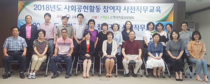 | ▲ 대전 서구 전문직 은퇴자들이 구청 대회의실에서 직무교육을 마치고 기념촬영을 하고 있다. |