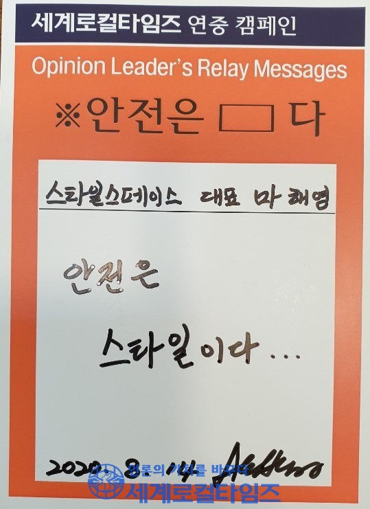 | ▲마해영 스타일스페이스 대표가 본지 연중캠페인에 참여한 후 메시지를 들어 보이고 있다. |