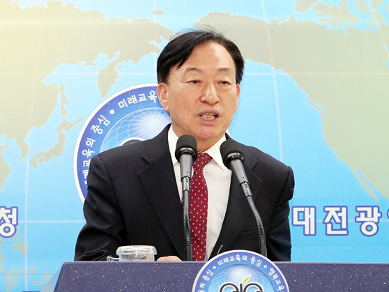 | ▲설동호 대전시교육감이 26일 교육청 브리핑룸에서 취임 3주년 언론브리핑을 열고 있다. <사진제공=대전시교육청> |