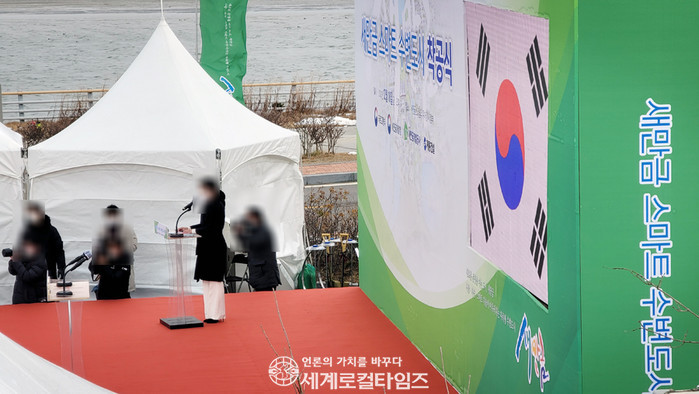 지난 18일 전북 김제시 진봉면 새만금방조제 소라쉼터에서 새만금수변도시 착공식이 진행됐다. 지지부진했던 새만금 개발을 돌아볼때 이날 새만금 첫 도시를 세우는 첫 삽은 의미가 매우 크다.