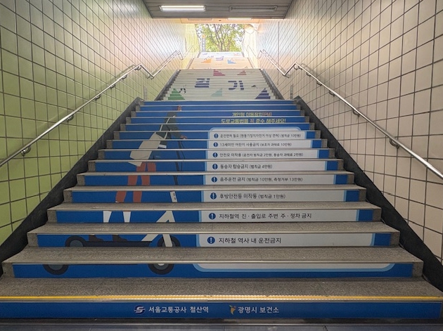 건강계단은 계단 내 벽면과 바닥 등에 운동 효과와 건강 메시지를 시각적으로 표현하여 시민들이 자연스럽게 계단을 이용하도록 유도하는 생활 속 건강증진 사업이다.