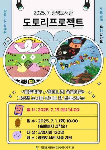 도토리 프로젝트 ‘호랭떡집·할머니의 용궁여행’은 오는 7월 1일부터 광명시도서관 누리집에서 사전 접수를 받는다.
