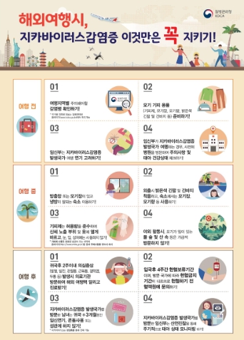 이에 이천시는 현재 지카바이러스 감염증은 예방백신 및 치료제가 없는 감염병으로 모기에 물리지 않는 것이 가장 중요하기에 위험 국가에서 모기 물림 후 2주 이내 의심 증상 발현 시 의료기관에 방문하여 의료진에게 해외 방문력을 알리고 신속한 진단 및 치료받을 것을 당부했다.
