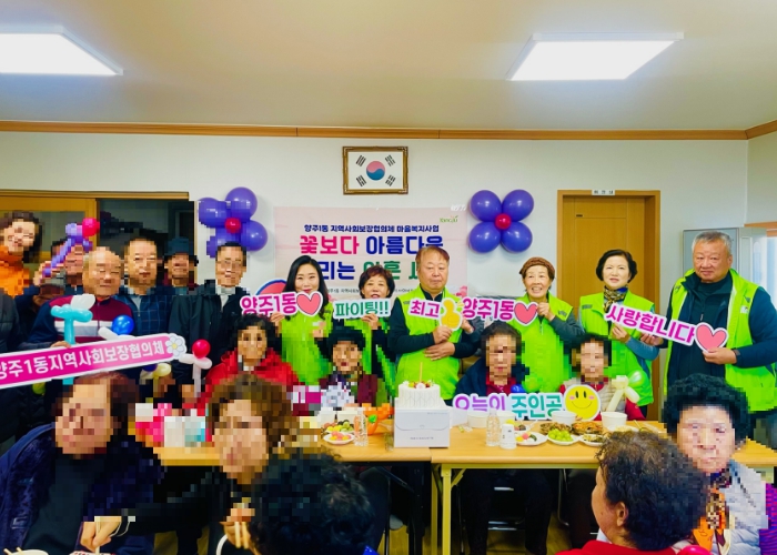 ‘꽃보다 아름다운 우리는 아흔 세대’사업은 2025년 양주1동 지역사회보장협의체 마을복지사업의 일환으로, 협의체 위원들이 90세 이상 어르신들을 모시고 직접 만든 소불고기, 잡채, 떡 등 잔치 음식을 함께 나누며 어르신들의 장수와 건강을 기원하는 사업이다.
