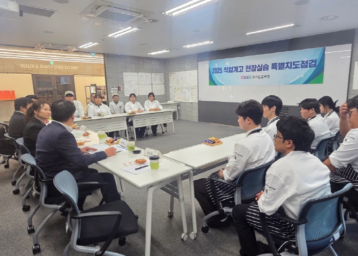 지도점검은 도내 직업계고 학생 21명이 참여 중인 씨제이(CJ)도너스캠프 아카데미 요리·베이커리 과정에서 진행됐다. 특히 생활 서비스 분야 전문 인력 양성을 위한 연계 교육형 실습 현장을 대상으로 했다.