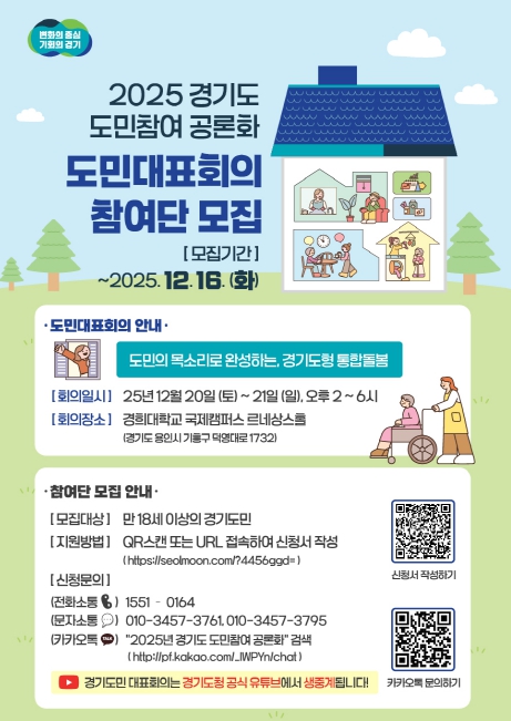 앞서 도는 전문가 토론회, 이해관계자 토론회, 남·북부 권역별 토론회를 순차적으로 개최해 핵심 쟁점을 도출했다. 20~21일 참여할 도민대표회의 200명은 무작위 선택 절반과 공개모집 절반으로 나눠 선발한다. 미래세대 의견 반영을 위해 10명의 청소년참여단도 별도 모집한다. 참여를 원하는 도민은 12월 16일까지 포스터의 QR코드를 통해 신청할 수 있다.
