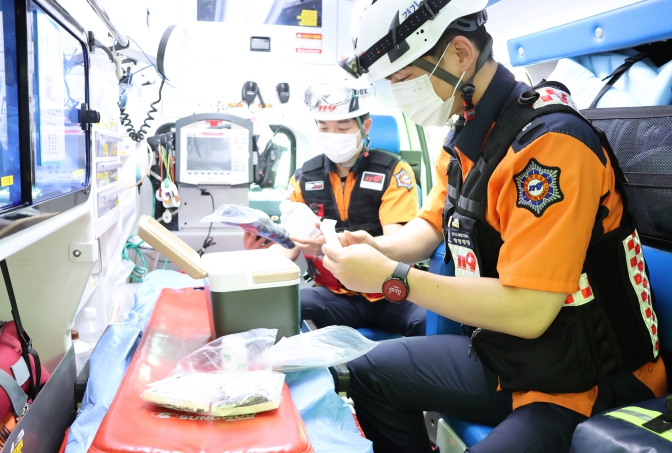 구급차 11대에는 열탈진과 열사병 등 온열질환 대응을 위한 얼음조끼, 생리식염수, 전해질용액, 정제소금 등 9종의 폭염 대응 물품이 비치됐다, 또한, 차량 내 에어컨 작동 상태를 일제 점검해 응급환자 이송 중 환자의 체온을 안정적으로 유지할 수 있도록 준비를 마쳤다.