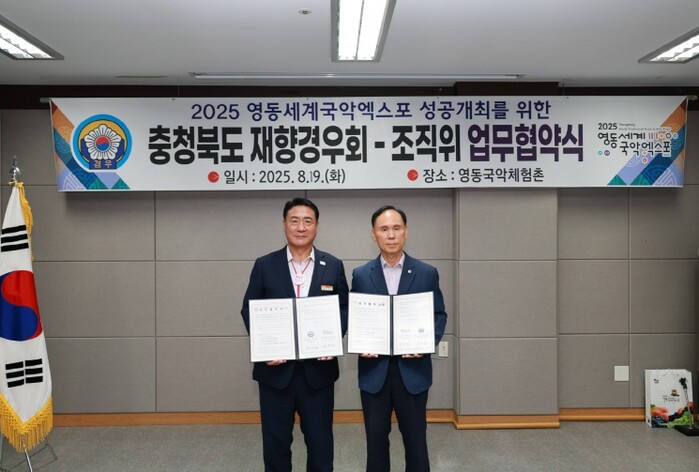 이날 협약식에는 공동조직위원장인 정영철 영동군수와 오원심 충청북도 재향경우회장, 조국환 영동군 재향경우회장 등이 참석했다.