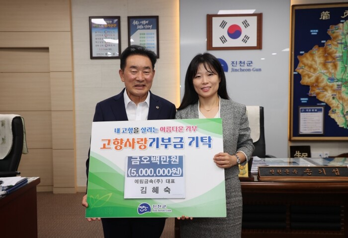송기섭 진천군수는 “고향을 잊지 않고 사랑을 실천해 주신 김혜숙 대표님께 깊이 감사드린다”며 “기탁해주신 기부금은 군민의 복지 향상과 지역의 지속가능한 성장을 위해 소중히 사용하겠다”고 말했다.