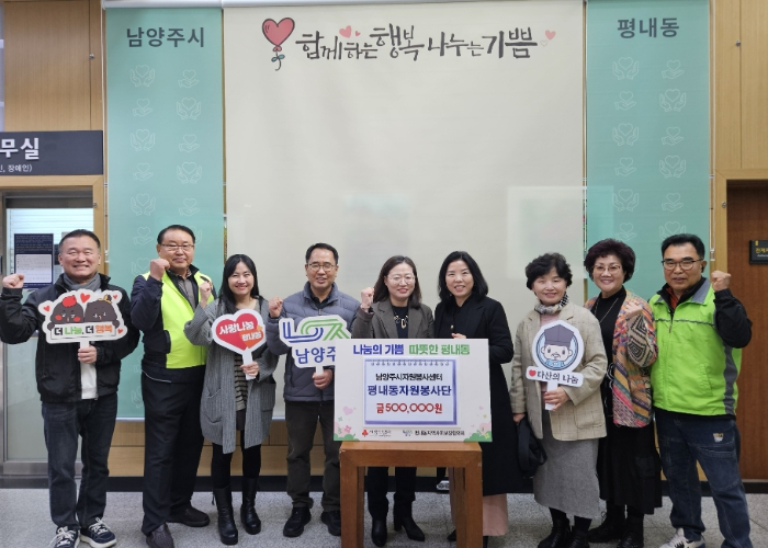 이번 기탁은 평내동 주민총회 및 지역축제인 ‘제6회 평내동 주민총회&어울더울한마당’ 행사 수익과 자발적 모금을 통해 마련됐다.