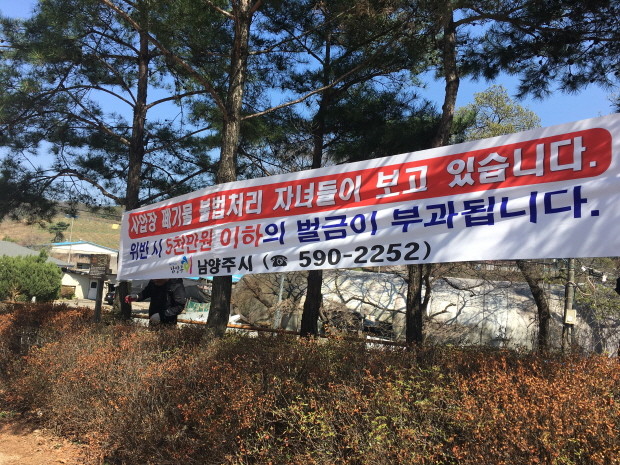 [세계로컬신문 고성철 기자] 경기도 남양주시(시장 이석우)는 지난 11일 사업장폐기물 불법처리를 근절하기 위해 진건읍 송능리, 진접읍 금곡리 등 폐기물 무단투기 우려지역 약 20개소에 홍보 안내문을 부착했다.