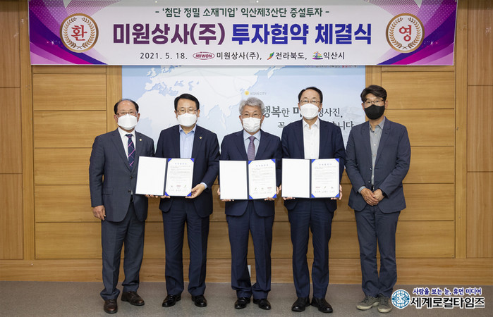 미원상사 손응주 대표는 지난 18일 익산시청에서 우범기 전북도 정무부지사, 정헌율 익산시장 등이 참석한 가운데 익산 제3일반산단 증설 투자를 위한 협약을 체결했다.