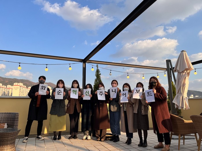 | ▲지난달 24일 조직문화 및 일하는 방식 혁신을 위해 첫 회의를 개최한 화순군 혁신 주니어보드 구성원들이 모여 기념촬영 하는 모습(사진=화순군) |