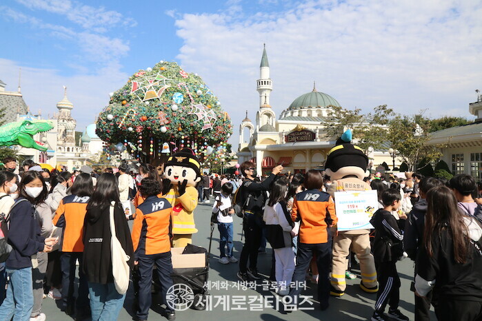 | ▲ 용인소방서가 에버랜드에서 '영웅이와 함께하는 안전피크닉'을 운영하고 있다. (사진=용인소방서) |