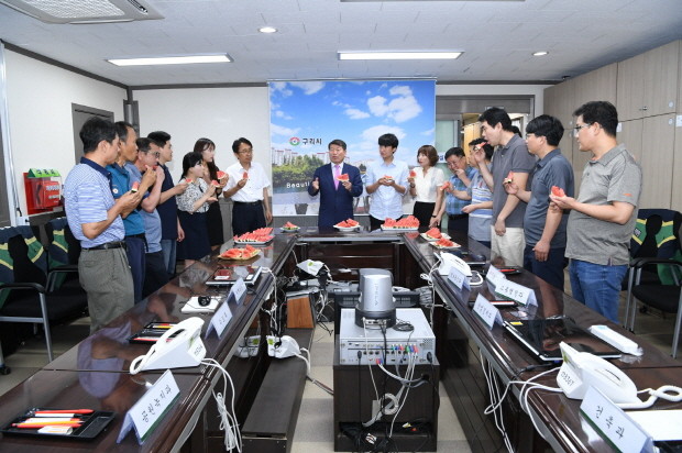 [세계로컬신문 고성철 기자] 경기도 구리시(시장 백경현)는 지난 12일 초복을 맞아 시 본청과 외청 등 부서별로 전 직원들에게 여름 대표 과일인 시원한 수박을 전달하며 잠시나마 동료들과 함께 더위를 식혔다.
