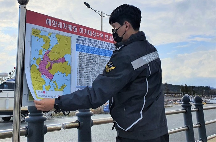 [세계로컬타임즈 김명진 기자] 목포해양경찰서는 최근 해양레저활동 허가대상 수역이 아닌 곳에서 레저활동이 증가함에 따라 선박의 안전한 통항로 확보와 해양사고 예방을 위해 ‘해양레저활동 허가대상 수역’ 공고판을 점검했다고 25일 밝혔다.