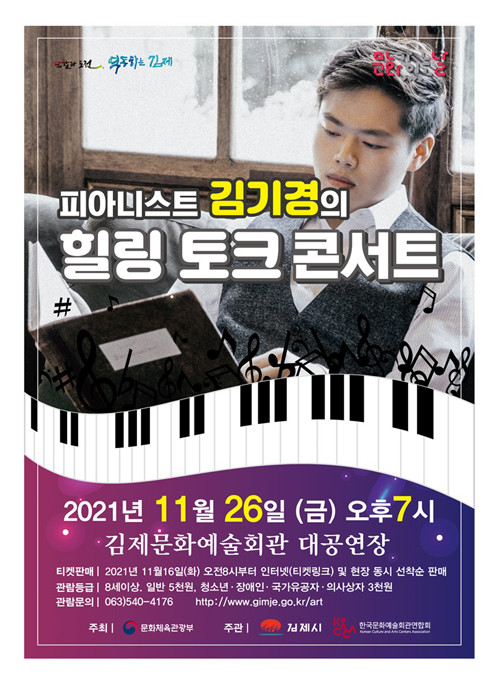 [세계로컬타임즈 조주연 기자] 전북 김제문화예술회관에서 오는 26일 ‘피아니스트 김기경의 힐링 토크 콘서트’와 30일, 공연장 상주단체 (사)드림필의 ‘함께하는 드림 콘서트’를 선보인다.