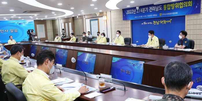 [세계로컬타임즈 김명진 기자] 전라남도는 20일 코로나19로 2년 반 만에 열린 ‘2022년 2분기 전라남도 통합방위협의회’에서 민·관·군·경 등 유관기관이 도민의 생명과 안전을 위협하는 다양한 위기에 대응하기 위해 끈끈한 공조 체계를 구축하기로 결의를 다졌다고 밝혔다.